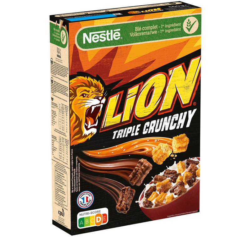 “Avec LION® Triple Crunchy, nous avons souhaité aller encore plus loin sur le plan de la gourmandise, une dimension qui a toujours été au centre de l’expérience LION® et qui a fait le succès de la marque depuis ses débuts. Toujours à l’écoute des attentes de nos publics, nous avons misé sur une expérience multi sensorielle qui propose une association goût et texture inédite en rayon et qui saura élever l’expérience du petit-déjeuner.” Affirme Florence Durr, Directrice Marketing chez NESTLÉ Céréales France et Belgique.