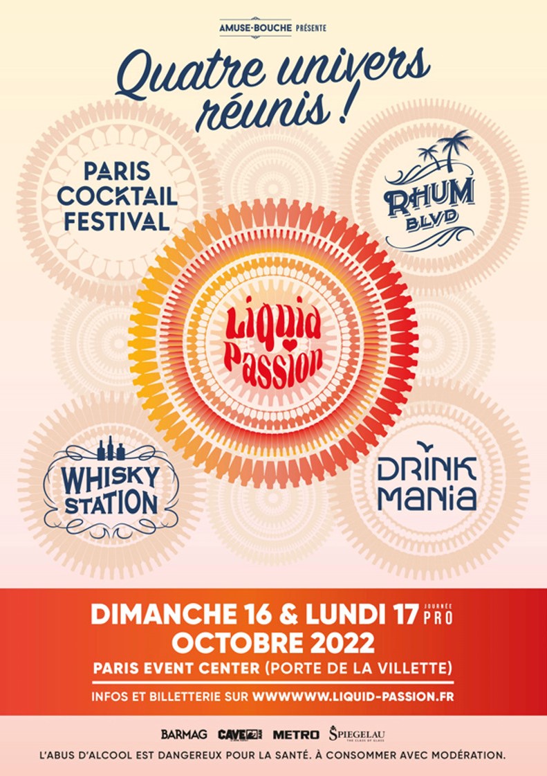L’édition 2021 avait réuni Paris Cocktail Festival, France Quintessence, Planète Bière et Rhum Avenue. Ces trois derniers événements reprennent leur liberté d'avant la crise sanitaire. L’édition 2022 de Liquid Passion rebat ainsi les cartes du salon et rassemblera des exposants de 4 univers liquides, à la fois distincts et complémentaires :