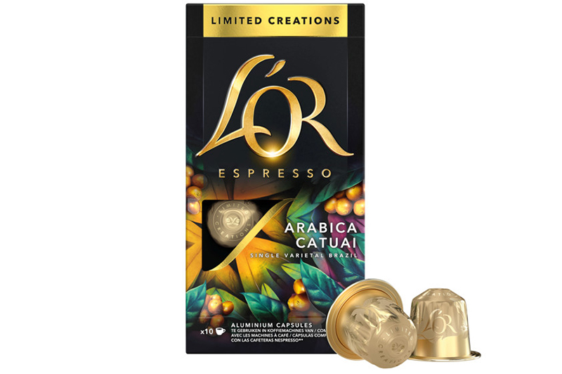 Cette première édition limitée L’OR Espresso nous fait voyager, à la découverte d’un Arabica rare cultivé au Brésil : l’Arabica Catuai. Cette variété est issue d’un arbre petit et robuste aux cerises jaunes, et non rouges, offrant des fruits plus sucrés. Les maîtres torréfacteurs L’OR ont créé un blend aux notes fraîches, douces et acidulées laissant place à des notes végétales et torréfiées.