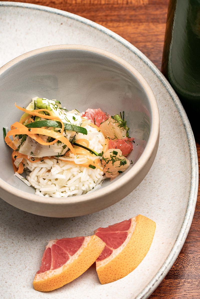 Lotte (ou cabillaud) au pamplemousse de Floride et riz basmati
