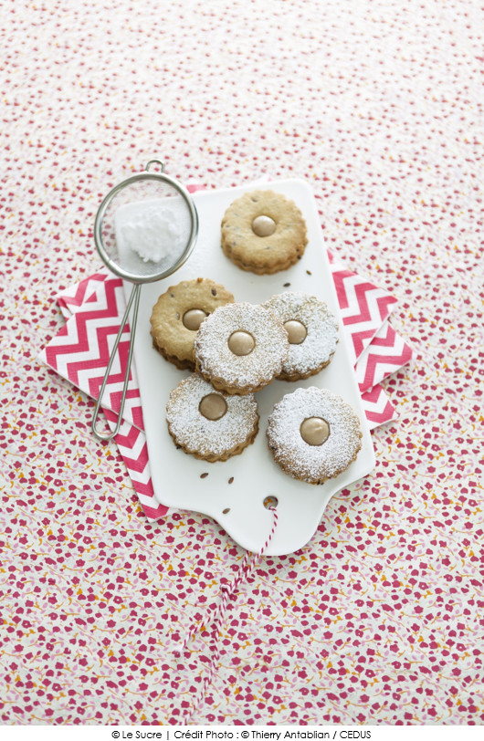 Déposer sur les biscuits pleins 1 cuil. à café bombée de crème et recouvrir d’un biscuit percé.