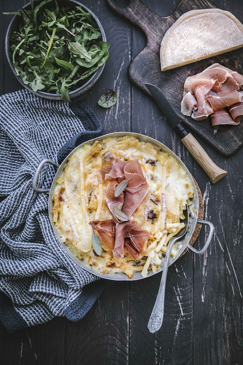 Mac and cheese façon tartiflette et jambon cru Aoste