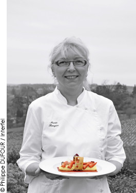 Il y a ceux qui aimeraient changer de vie et il y a ceux qui passent à l’acte. Marie Rougier appartient évidemment à la seconde catégorie. Comptable de formation, elle a quitté le Lot-et-Garonne en 1980 pour venir aider sa mère à Monbazillac. Ce changement de cap, sans avoir suivi la moindre formation, prouve que l’on peut, avec du goût et de la sensibilité, atteindre les sommets. Aujourd’hui, sur les hauteurs du village au cœur des vignes, Marie Rougier peut s’appuyer sur son fils spirituel, Damien (14 ans de maison), pour proposer une cuisine gastronomique orchestrée autour des produits régionaux et du jardin familial..