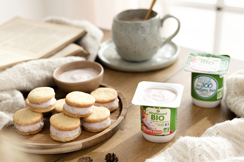 La gamme Simplement Bio propose des yaourts Bio qui allient gourmandise et accessibilité ! Ces yaourts sont fabriqués en France avec le lait de 300 Laitiers Bio unis en coopérative, et réunis autour des mêmes passions : l’amour de la nature, le respect de l’humain et des animaux et la gourmandise.