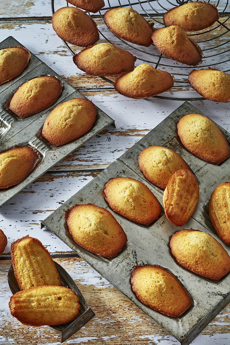 ⑧• Enfourner pendant 5 minutes à 220°C. Prolonger la cuisson de 5 minutes à 200°C jusqu’à ce que la bosse soit bien formée et les madeleines bien dorées.