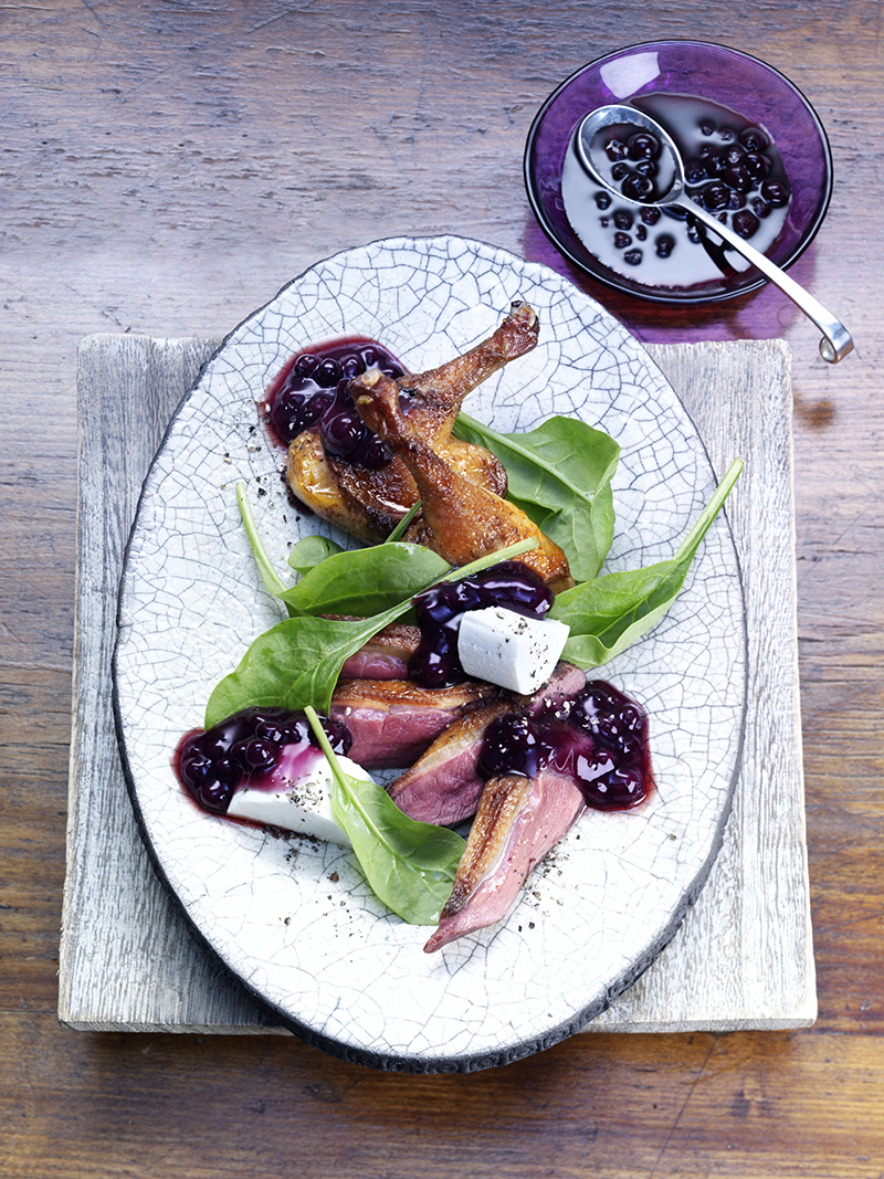 Magrets de canard sauvage avec des myrtilles sauvages