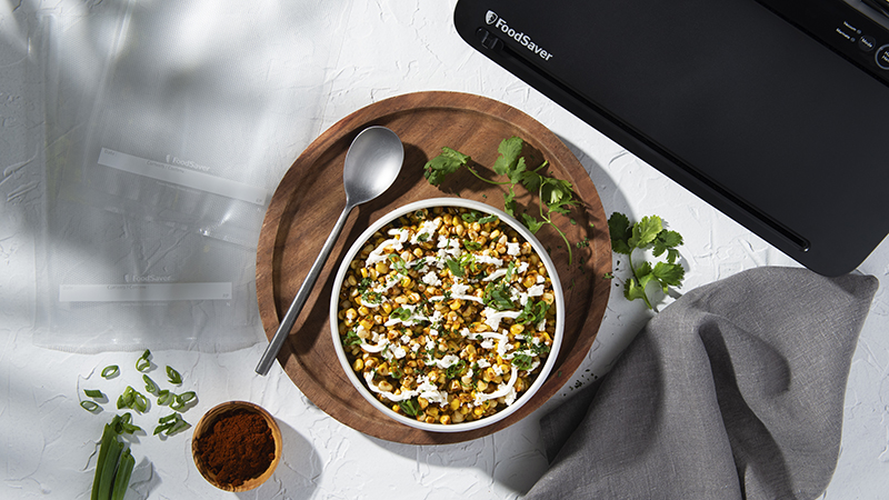 Aujourd'hui nous vous proposons une toute nouvelle recette de batchcooking pour un déjeuner au bureau savoureux grâce à FoodSaver® et son système complet de mise sous vide. La recette du maïs façon streetfood mexicaine et simple et rapide à préparer !