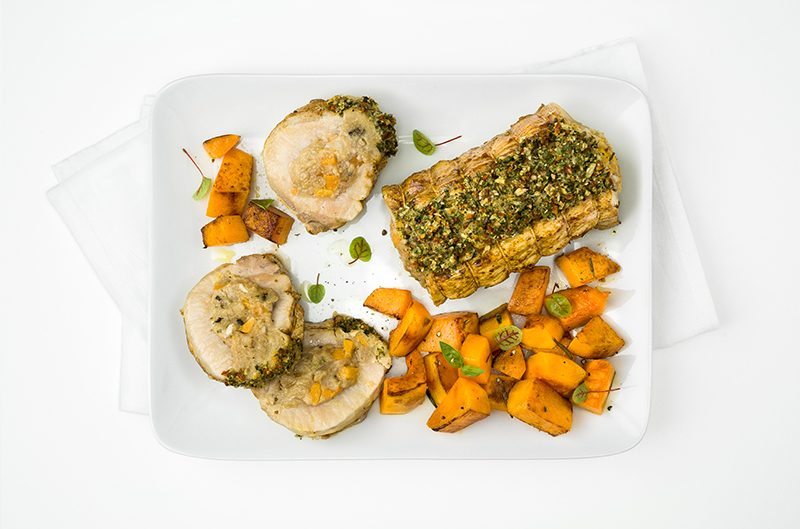 Ce rôti s’accordera parfaitement avec une poêlée de courge butternut parsemée de basilic et d’oseille pour une recette saine et équilibrée !