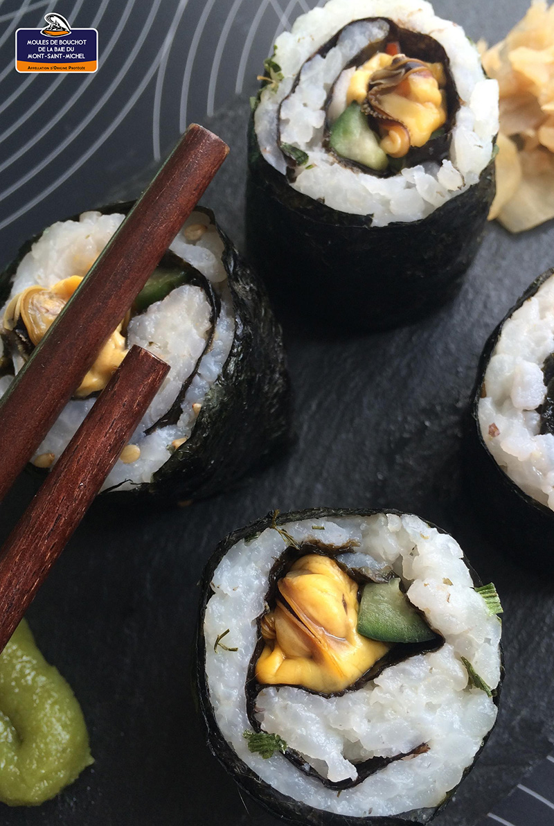 Makis de moules de bouchot de la Baie du Mont-Saint-Michel et concombre