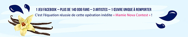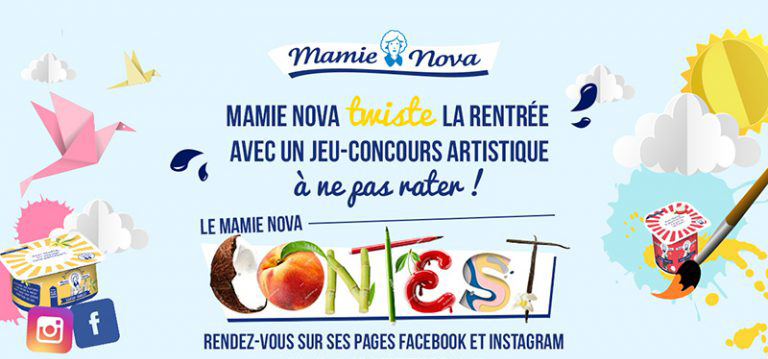 Avec la complicité de trois créatifs talentueux, Mamie Nova, la marque la plus enthousiasmante de l’ultra-frais, lance à la rentrée un jeu-concours inédit sur sa page Facebook pour twister le quotidien de ses plus de 140 000 Fans. À la clé de ce Contest, une œuvre originale spécialement réalisée pour l’occasion, qui sera offerte à un consommateur par tirage au sort !