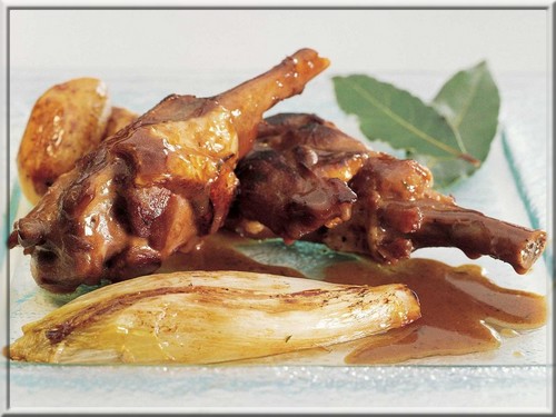 3.Dresser les manchons de canard sur assiette, verser un cordon de sauce. Parsemer de fleur de sel.