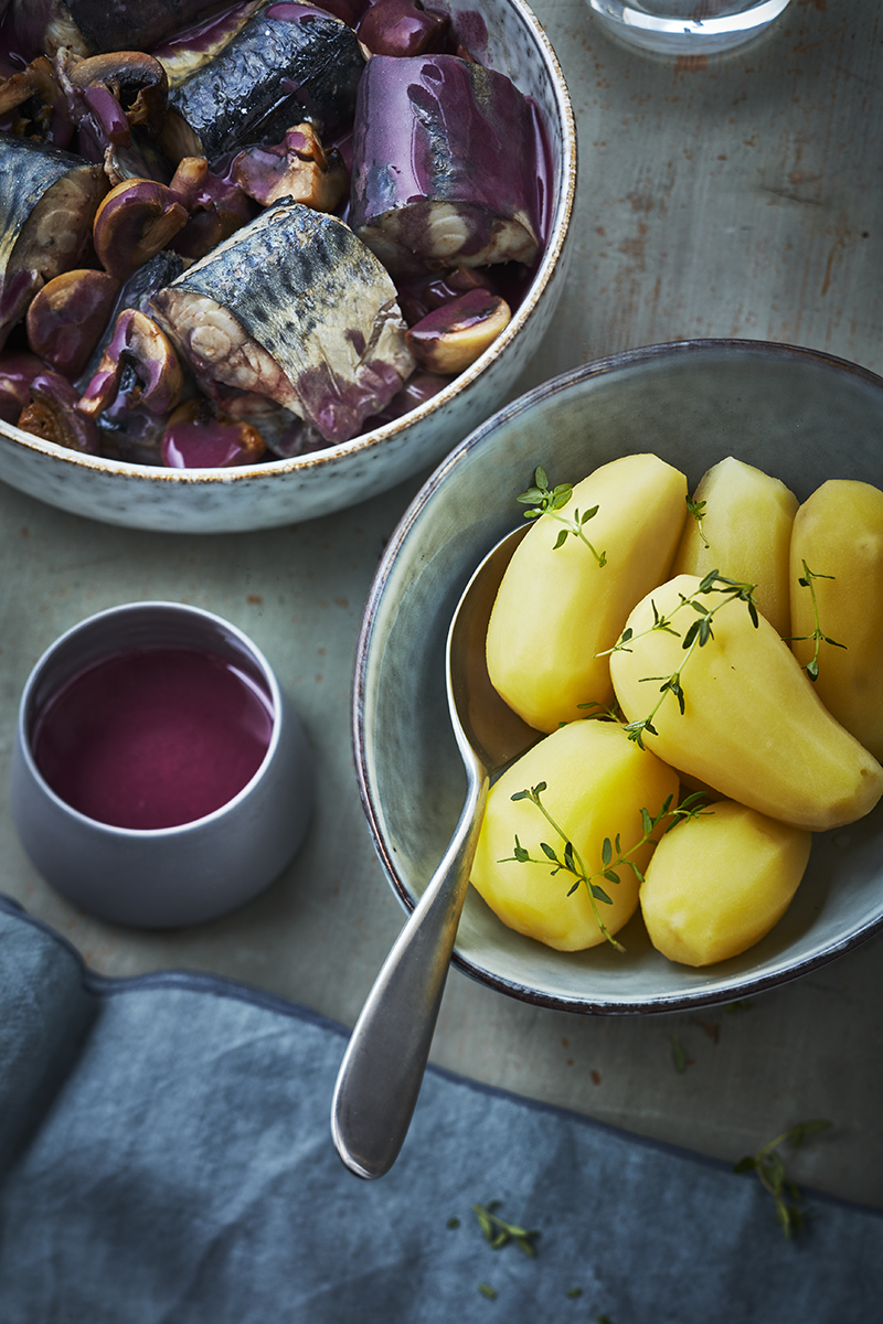 Une recette raffinée qui met en avant les saveurs de la pomme de terre cuite à la vapeur relevée d'une sauce meurette.