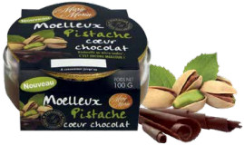 Marie Morin propose un moelleux à la pistache sans colorant avec un coeur fondant au chocolat. Un dessert pâtissier inédit au rayon des desserts et innovant par le mélange des saveurs et des textures.
