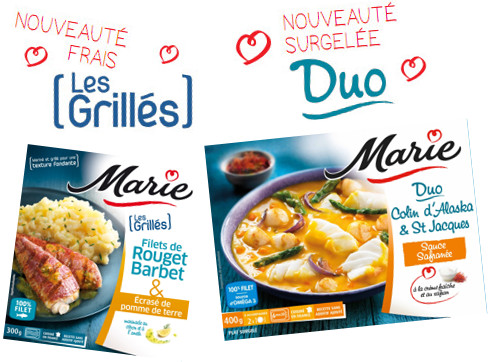 Marie propose une nouvelle gamme de poissons, inédite au rayon Traiteur frais et surgelé : Les Duo de la mer et Grillés