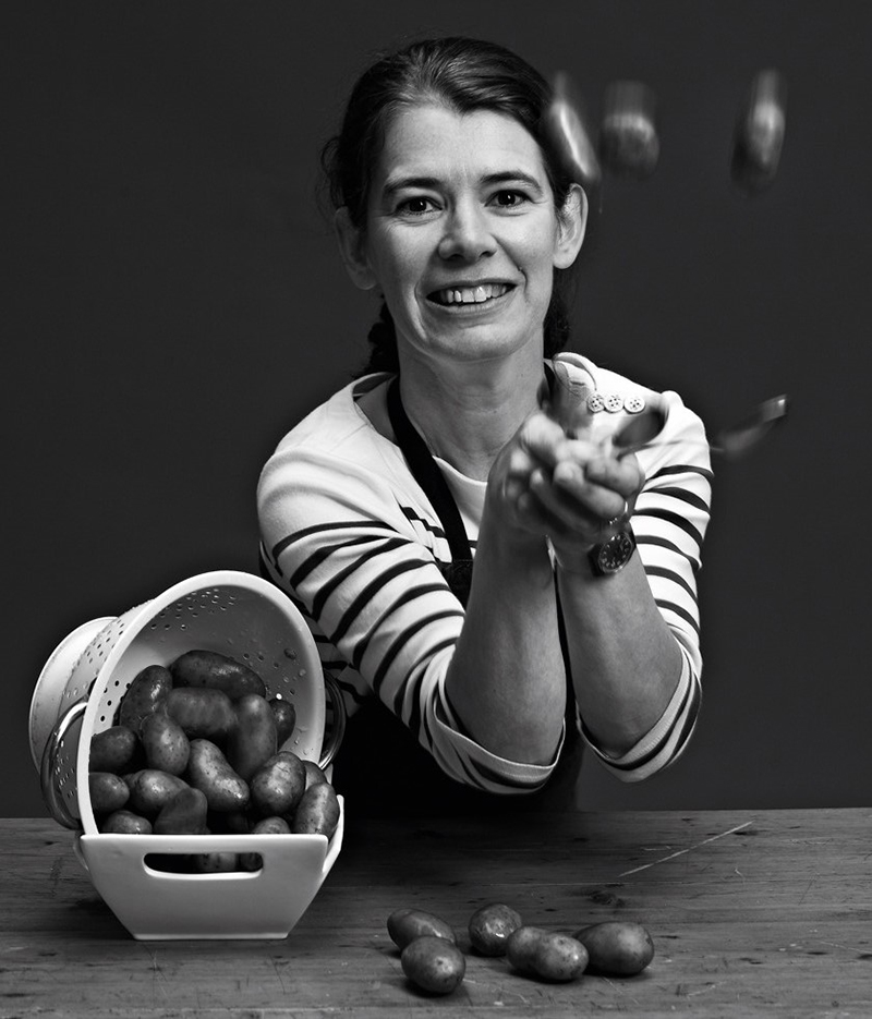 Elle est devenue le 10 mai 2010 la première femme intronisée Toquée de la Pomme de terre. Car la pomme de terre est, pour elle, un élément fondamental de la cuisine et de sa cuisine. Au four, en gratin, en purée, la pomme de terre ne la déçoit jamais. Elle vient d'ailleurs de sortir un nouveau livre de recettes "Vive les patates !" aux éditions Trop Mad.