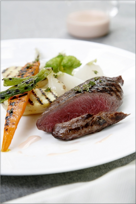 Merlan Grillé aux Petits Légumes, Crème d’Ail Rose