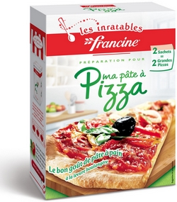 2• Je verse le contenu d'un sachet de préparation pour pâte à pizza dans un saladier et je creuse un puits pour y verser la levure puis l'eau chaude. J'ajoute l'huile d'olive.