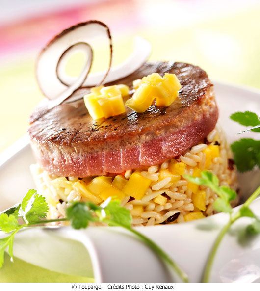 Mi-cuit de steak de thon aux fruits exotiques et coco