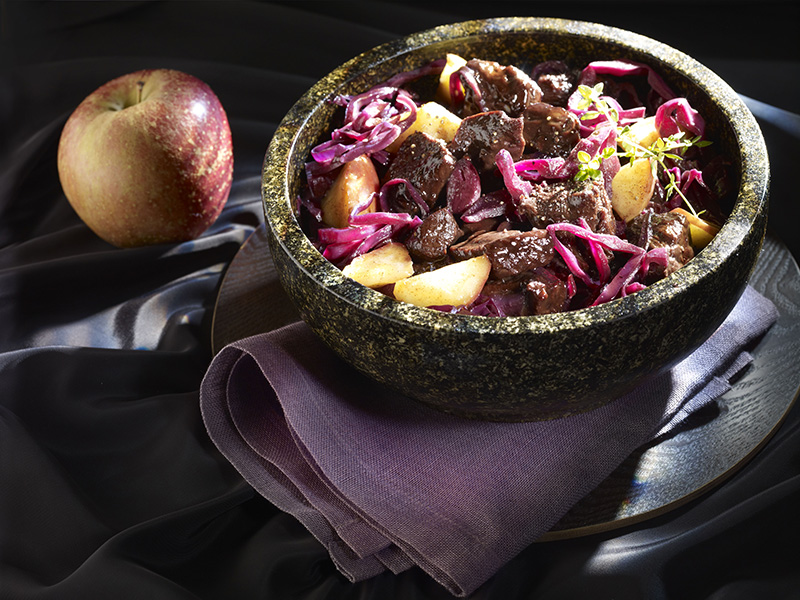 Mijoté de joue de bœuf aux pommes et chou rouge