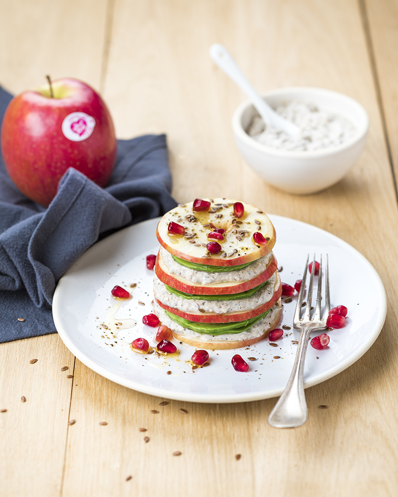 Millefeuille aux Pink Lady®, rillettes de sardine, avocat et grenade