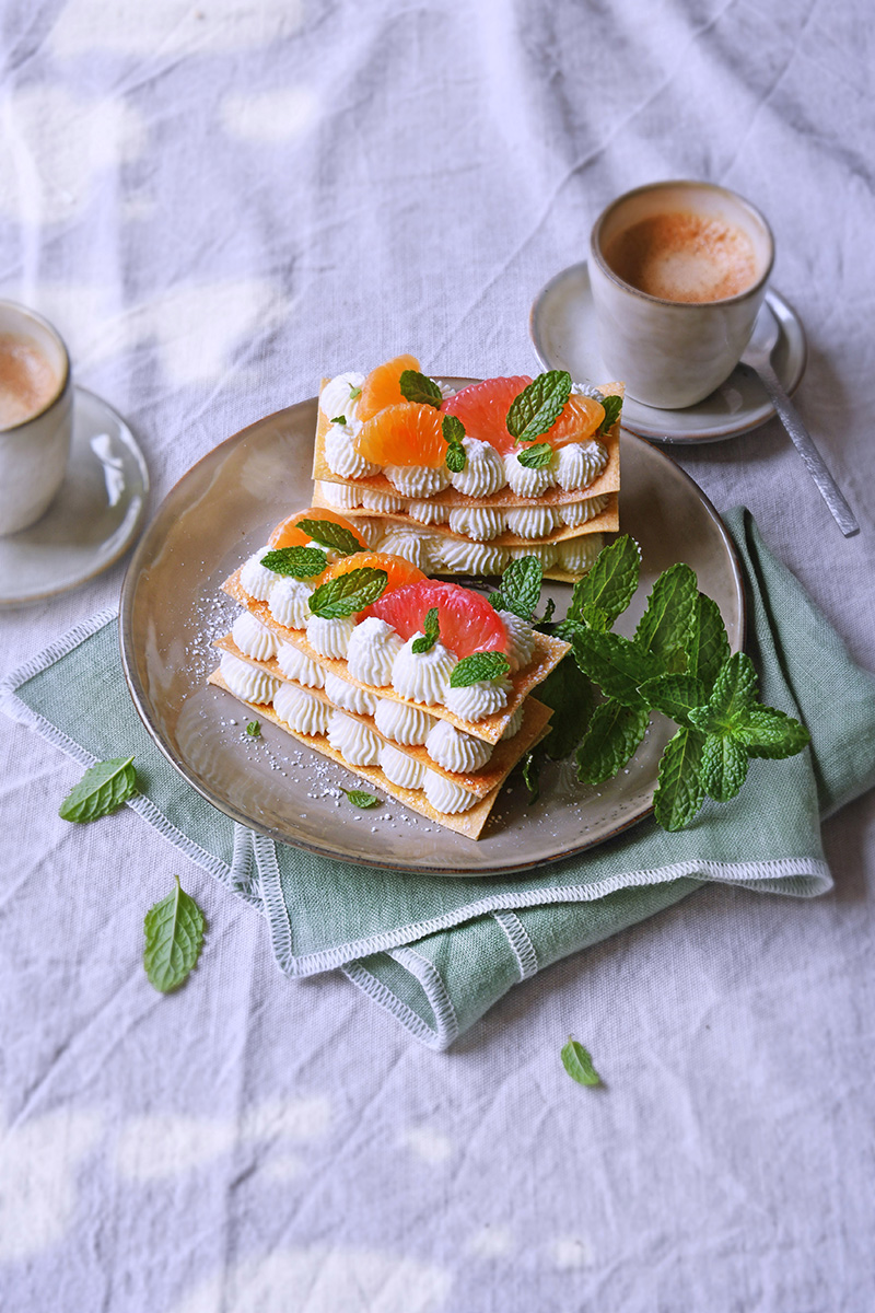 Un millefeuille de lasagnes dans une version sucrée chantilly/clémentines pour un dessert gourmand et croquants, une expérience culinaire unique.