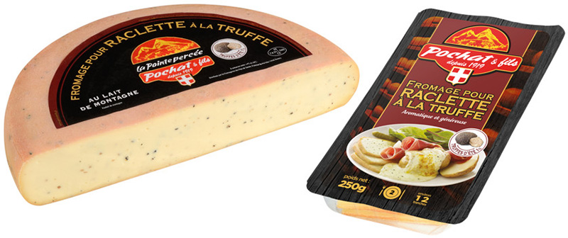 Pochat & Fils réinterprète un classique avec une recette audacieuse sublimant un produit de terroir : un fromage pour raclette à la truffe d’été ! Les fromagers allient avec savoir-faire le lait de vache de races locales, des brisures de truffes d’été et des arômes naturels pour une création riche en saveurs. Fleurit ainsi un mariage surprenant, alliant le crémeux et l’onctuosité du fromage à raclette au goût subtil de la truffe d’été.