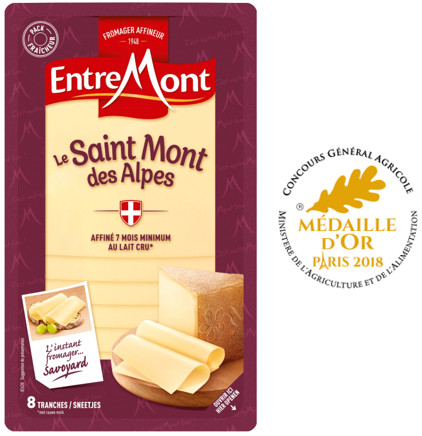 Fabriqué à La Bâthie en plein cœur de la Savoie dans une fromagerie traditionnelle, le Saint Mont des Alpes, fromage à pâte pressée cuite, est le résultat d’un savant mélange : un lait cru de qualité issu de vaches élevées localement allié au savoir-faire des maîtres fromagers Entremont.