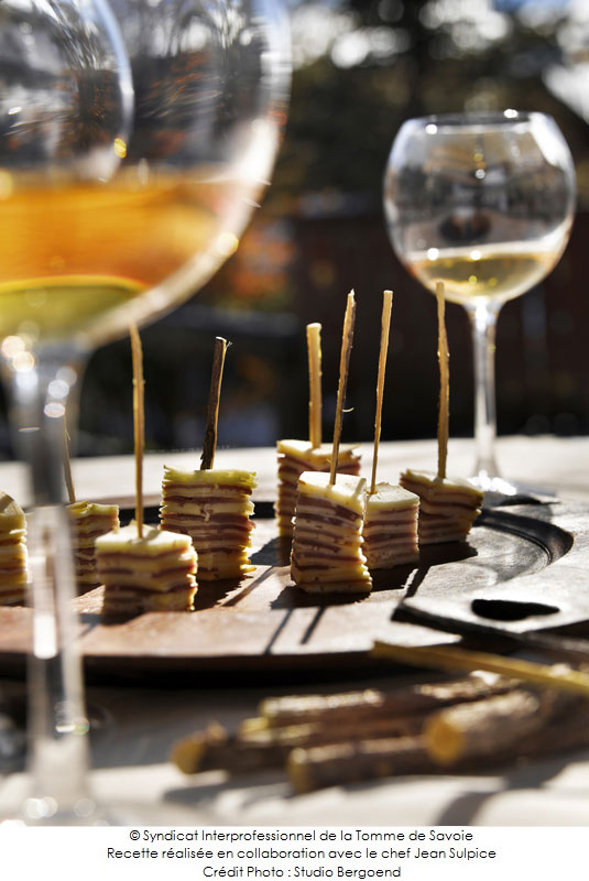 Millefeuilles de Tomme, jambon cru et pommes de Savoie, au bâton de réglisse
