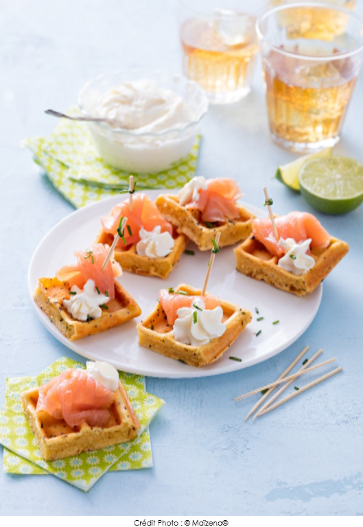 Mini-gaufres au saumon fumé et leur chantilly au citron vert