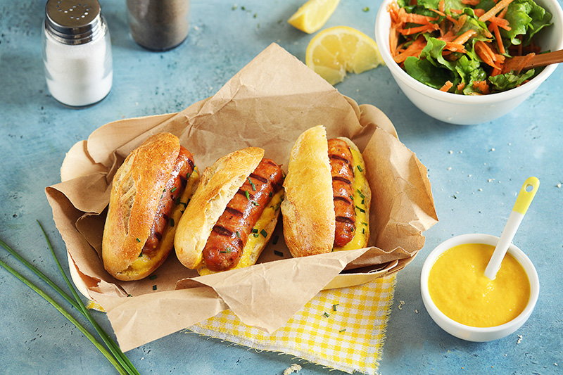 – Faites cuire les saucisses au barbecue ou au grill selon le temps indiqué sur l’emballage.