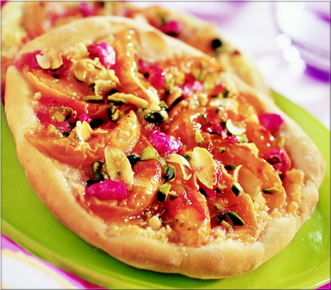 Mini-Pizzas aux Abricots, Pistaches et Pralines