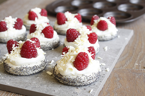 ①• Étaler la pâte et découper 12 cercles avec l’emporte pièce rond. Rouler les bords dans le pavot.