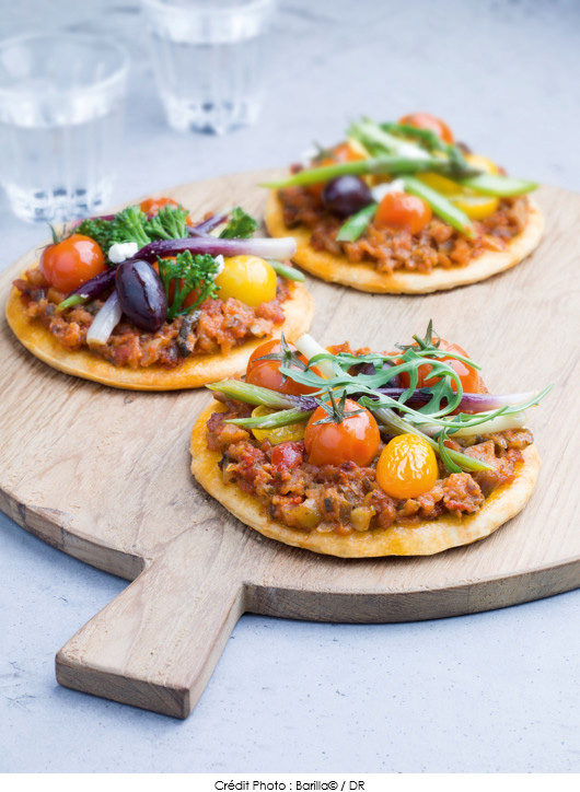Mini pizze veggie au Pesto Rustico Légumes Méditerranéens Barilla©