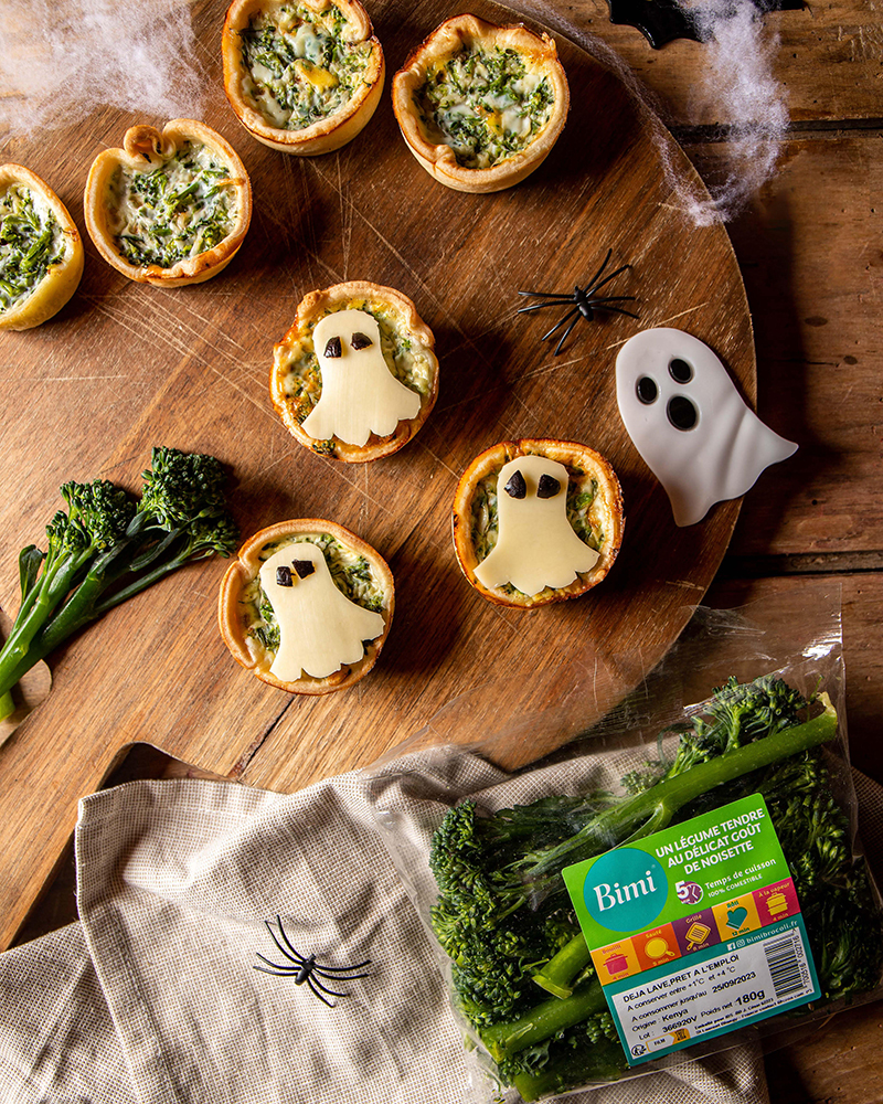 C’ZON, le spécialiste des légumes frais de pleine saison, propose une nouvelle recette de mini quiches aux Bimi® ! À la fois terrifiantes et délicieuses, elles sauront faire trembler les papilles des petits et grands pour cette soirée si spéciale. on ressort les chaudrons, on prépare les potions et on plonge dans l’atmosphère magique d’Halloween avec ces mini quiches, fondantes et effrayantes