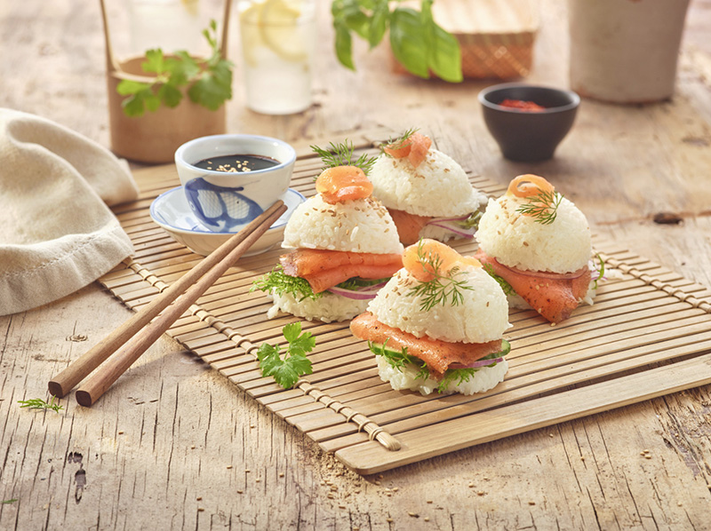 Mini sushi burgers au saumon PAS FUMÉ Poivre doux MOWI®