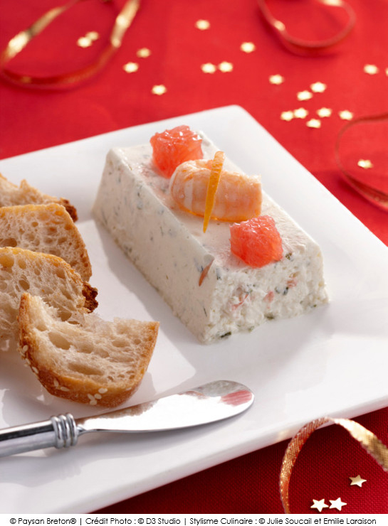Mini terrine de langoustines, pamplemousse rose et Fromage Fouetté Madame Loïk Échalote-Ciboulette