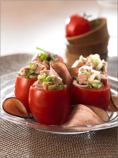 Enfin, servez les tomates farcies dans de petites assiettes.