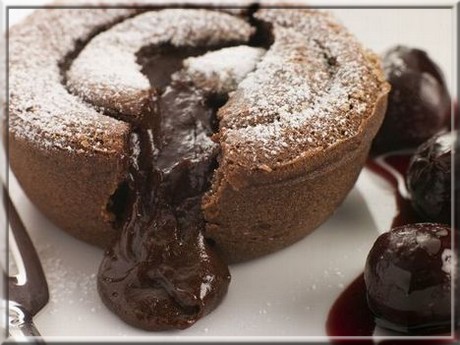 3.Enfoncez 1 carré de chocolat (d’environ 1,5 cm) au cœur des moelleux et glissez au four 12 mn.