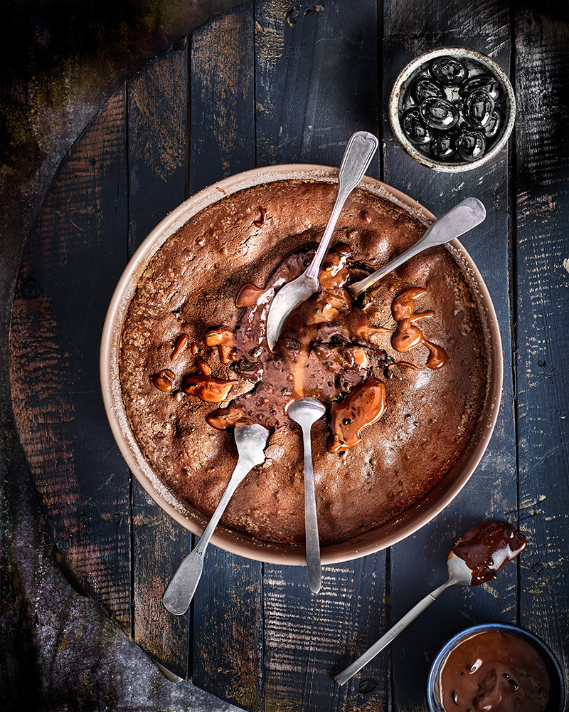 Servir le moelleux à même le moule avec une cuillère. Servir la sauce caramel à part.