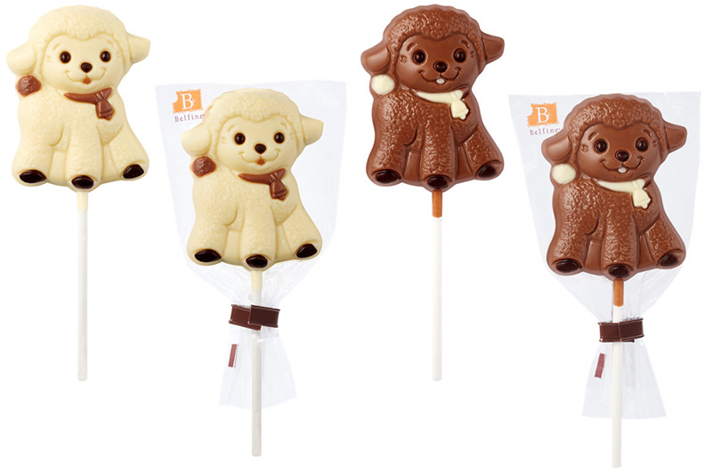 Sucette agneaux Belfine au chocolat blanc