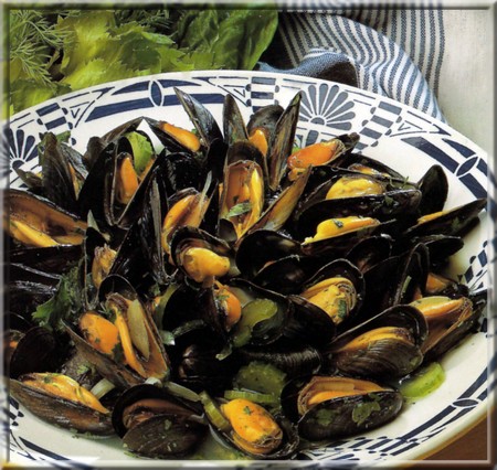 4.Remettre les moules dans la cocotte. Y mélanger le contenu de la poêle. Faire réchauffer quelques minutes sur feu doux. Servir aussitôt.