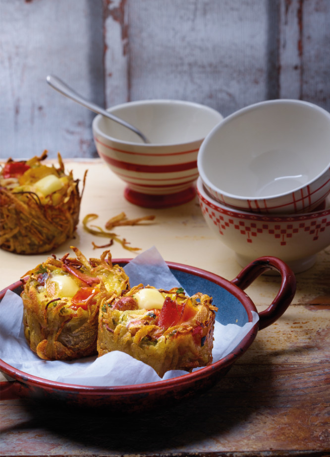 ④• Tasser le mélange sur les bords des moules en laissant de la place au centre.