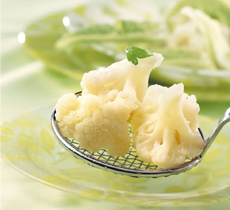 1• Mettez à cuire séparément les légumes à l’eau bouillante, ajoutez le safran en poudre pour le chou-fleur.