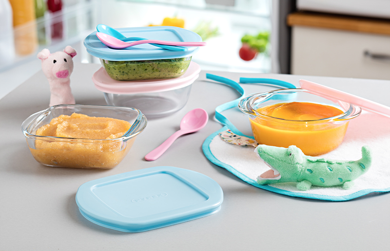 Pyrex introduit des nouvelles gammes de plats pour les tout petits avec My First Pyrex® & My First Pyrex® + ! Ces plats sont fabriqués en verre borosilicate Made in France, un verre unique durable et polyvalent. Pyrex® propose des plats ronds et des plats carrés pour s'adapter parfaitement aux besoins quotidiens des bébés. Grâce à leurs couvercles colorés, ils pourront être stockés au frigo et au congélateur.
