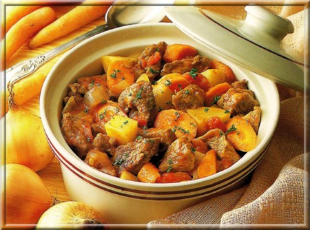 Dégraisser complètement le navarin et le réchauffer à feu moyen 30 min. Parsemer du persil.