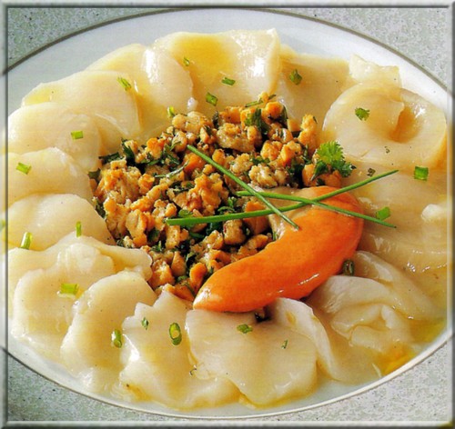 6-Mélanger huile et jus de citron. Verser cette sauce sur les noix de St-Jacques.Parsemer de fines herbes ciselées ou d'aneth.