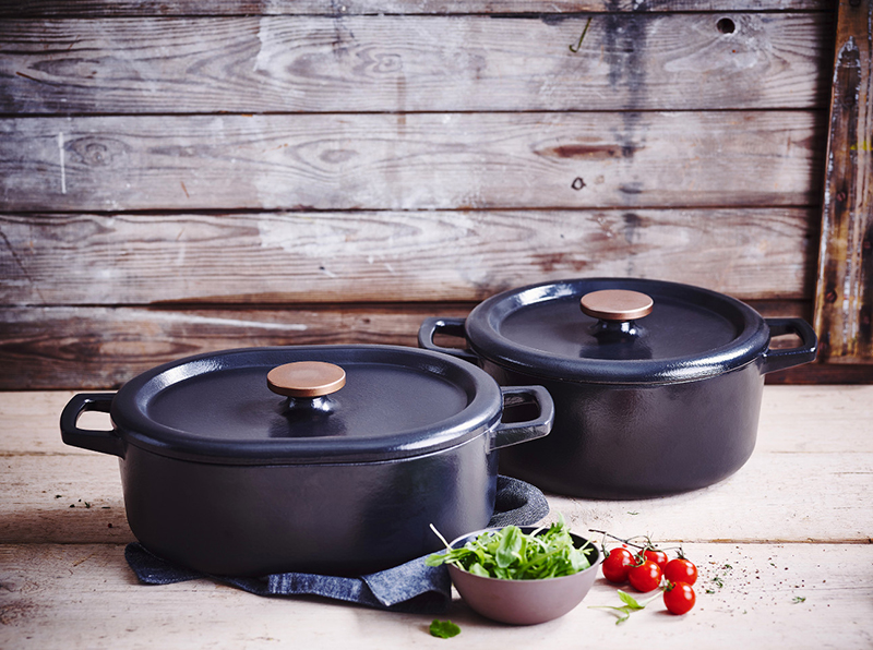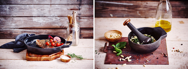 La nouvelle gamme en fonte NORI, avec triple émaillage intérieur et extérieure, très design, va séduire par son style et ses excellentes performances culinaires. Poêler, rôtir, griller, bouillir, mijoter, piler, chaque ustensile NORI a sa fonction et vous propose de passer directement de la cuisine à la table pour le service.