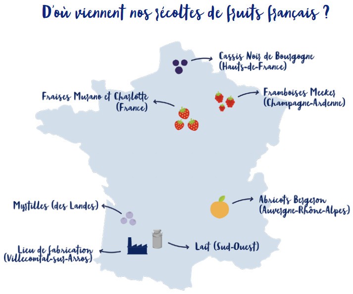 ✓ Du lait français collecté avant tout chez les éleveurs du sud-ouest, à proximité de notre laiterie de Villecomtal- sur-Arros dans le Gers,