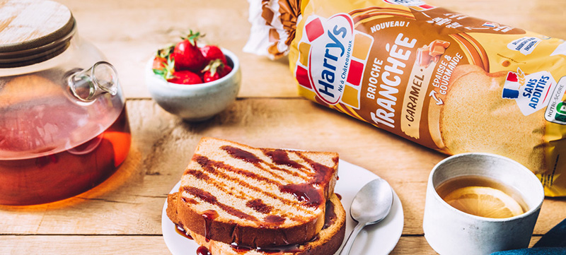 Cette nouveauté est élaborée avec du vrai caramel français, mélangé à la recette traditionnelle Harrys pour faire fondre tous les gourmands. En plus, ses tranches sont encore plus généreuses, puisqu’elles sont d’une épaisseur de 17 mm au lieu de 14 :l’idéal pour ceux qui aiment la brioche toastée, puisqu’ils apprécieront sa double texture, sa double texture : croustillante à l’extérieur, tout en restant moelleuse à l’intérieur !