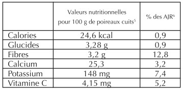 • Nutrition (4) : 100 g de poireaux représentent 24,6 kcal